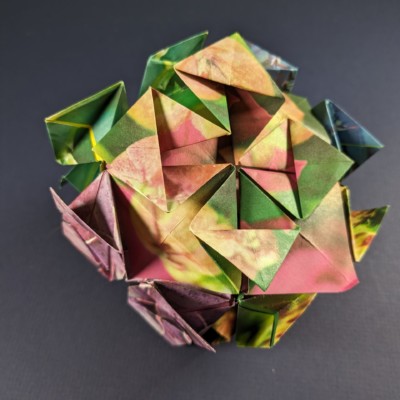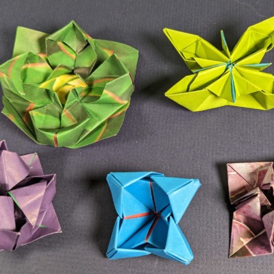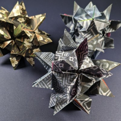 A selection of origami I have folded. I particularly enjoy folding tessellations and modular pieces, as well as creating compositions of origami tessellations with decorative paper backgrounds.