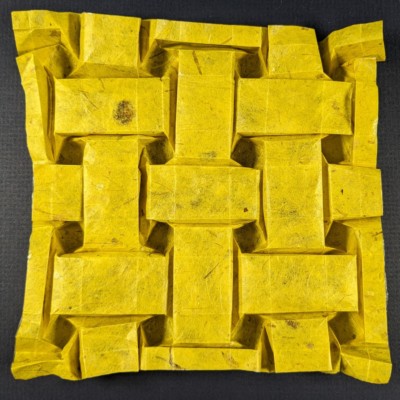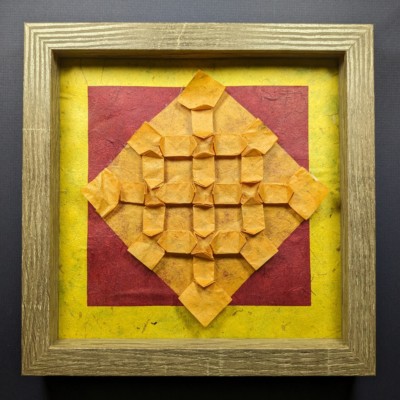 Folded from 1 sheet of 6" mulberry paper, mounted on decorative papers