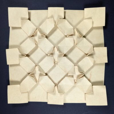 Folded from 1 sheet of 6" mulberry paper, mounted on decorative papers